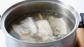 豚肉のうまみが溶け出たゆで汁をスープとして活用します。しいたけと卵をプラスして、ボリュームたっぷりのおかずスープに。