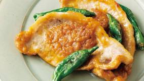 付け合わせのししとうも、肉と一緒に焼いて盛り合わせます。チューブ入りのおろししょうがを使って簡単に!