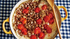 こしょう豚、ミニトマト、スパイスのおいしさが1つになったご飯。スパイスは好みのものを1〜2種類でも。