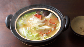 魚のアラを強火で炒めて煮出したスープは、豚骨を思わせる濃厚なうまみです。みずみずしい白菜を加え、まろやかなおいしさに!
