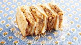 パン粉をつけて揚げる代わりに、カリッとトーストしたパンにひき肉とたまねぎ入りのマッシュポテトをはさみます。手間なく、食べやすく、低エネルギーのコロッケです。