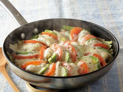 鶏むね肉に新たまねぎと絹さやを合わせて、春のおいしさを楽しめる一皿に。肉はかたくり粉をまぶし、ふたをして蒸し煮に。しっとり柔らかく仕上がります。