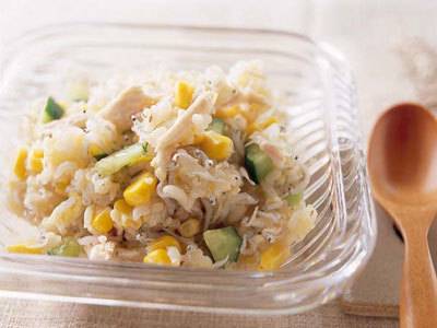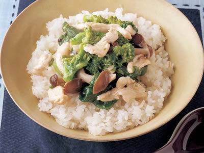 ゆでるとぬめりの出るきのこも、パサつきがちな鶏肉と合わせることでおいしくいただけます。軽い香りの中国風ドレッシングがぴったり。