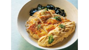 レモンの酸味とにんにくの風味が効いた「レモン鶏そぼろ」を使って、エスニックスープをつくります。