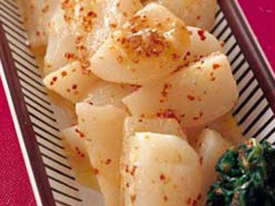 かぶの甘みと粒マスタードの辛さがよく合う一品。透明になるまでゆでて、甘みを出します。
