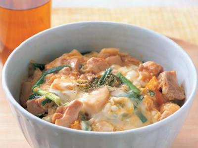 卵を溶くときは絶対に混ぜすぎないこと。鶏肉はあらかじめ電子レンジで酒蒸しします。