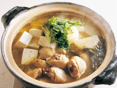 柚子こしょうで辛みと香りを添えた、体のしんから温まる鍋。シメはおじややうどんがよく合います。