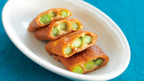 カリッと焼けたチーズの中から、ジューシーなアスパラガスの味と香りが口いっぱいに広がる一品です。