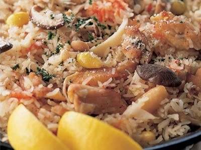 きのこのマリネを使ったパエリア。さわやかな酸味と香ばしい焼き目があとをひきます。