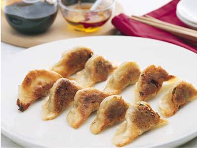 きれいな焼き色がついた焼きギョーザを皮から手作りで。