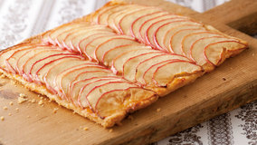 パート・ブリゼ(パイ生地)が残ったらもう一品。のばした生地に薄切りのりんごを並べて焼き上げます。溶かしバターの塩けがポイント。