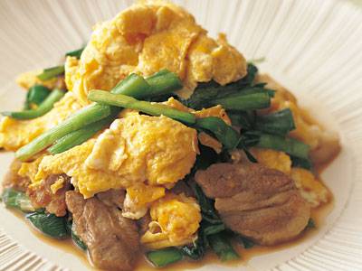 相性のよい"豚にら"に卵を加え、栄養&ボリュームアップ。卵は2度火にかけるので、最初にいためるときには火を通しすぎないように。