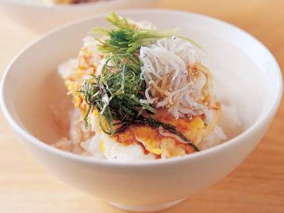 薬味野菜をたっぷりのせたご飯に、トロリと煮詰めたソースがアクセント。