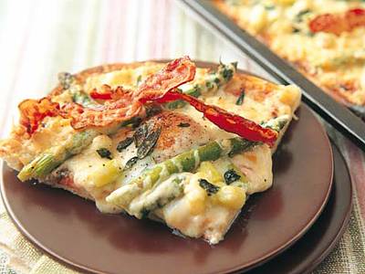 アスパラガスと目玉焼きのピッツァ