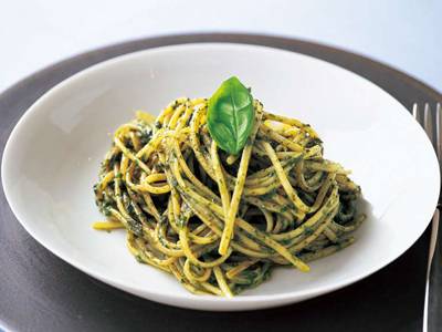 シンプルなパスタなので、香り高く仕上げることが大事。ゆでたじゃがいもやさやいんげんを加えてもいいでしょう。