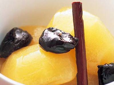 白ワイン風味で煮たりんごと、プルーンの白ワインづけを合わせてどうぞ。