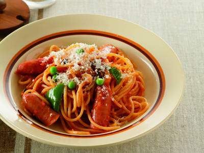 昭和のスパゲッティの定番。ケチャップにトマトの水煮を加えるのがポイント。