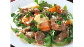 白い野菜類をじっくりと炒めて甘みを引き出し、たらの香りを生かした、色合いもやさしい煮物。