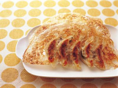 ギョーザを焼く時に水溶き小麦粉を流すと、香ばしい「羽根」をつけたギョーザの焼き上がり!