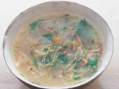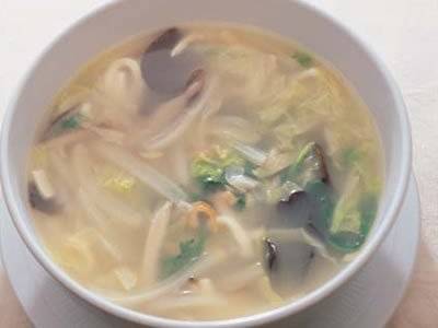 白菜と干しえびのスープをサンラータン風にアレンジ。干しえびのうまみがきいています。