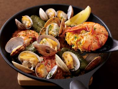フライパンで本格的なパエリヤを!お米に魚介や野菜のうまみを存分に吸わせて炊き上げます。ふだんのご飯とはひと味違う、歯ごたえや香ばしさを楽しみましょう。
