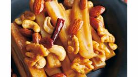 鶏むね肉に香ばしいナッツのソースが食欲をそそります。ミックスナッツで手軽に栄養もプラスでき、見た目も豪華、食感も楽しめます。