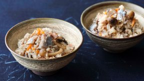 いわし本来の持ち味を最大限に楽しめるよう、しょうゆは使わずに、たっぷりの酒と梅で煮ます。しっとりとなめらかで、やさしく上品な味わいです。うまみたっぷりの煮汁は味を調えてソースにし、いわしにからめながら、いただきます。