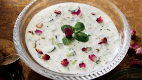 さっぱりとして栄養満点の前菜です。イランではヨーグルトも食卓を彩るおかずの一品。ライスと合わせて食べたりもします。イランが原産のくるみを加えて、食感のアクセントに。