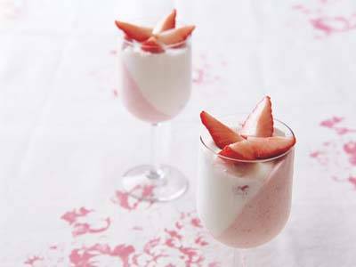 いちごのピュレでグラスに模様をつけるだけで、まるでレストランのような盛りつけに変身します。