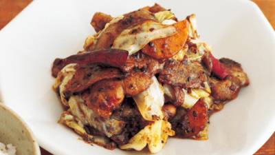 キャベツは油通しする必要なし、豚肉を下ゆでする必要もなし。いつもの炒め物感覚で気軽につくれるケンタロウ流ホイコーロー。八丁みそに黒ごまが加わってコクも倍増です。