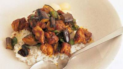 なすは角切りにして全体を炒めるとクタッとせずに食感も残り、油もよくからみます。ご飯はもちろん、パンとも相性抜群!