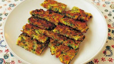 中はモチモチ、外はカリカリの素朴なおやき。生地に味をつけて、豚バラ肉のうまみをプラスします。