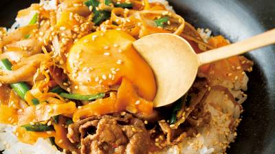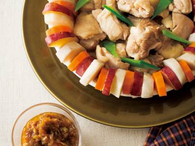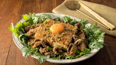 イメージは、キャベツ畑の真ん中で眠る豚さん。まろやかで香ばしいピリ辛だれで、ゆでたお肉と野菜がモリモリ食べられます。