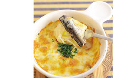 市販のオイルサーディンをねぎでサンドイッチ!ねぎに、オイルサーディンとチーズのうまみがベストマッチ。