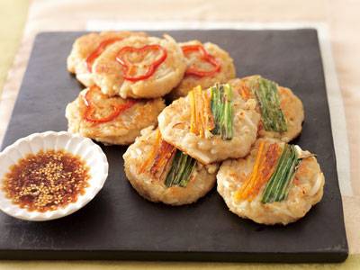 チヂミは、すりおろしたじゃがいもを加えると、モチモチの食感に。