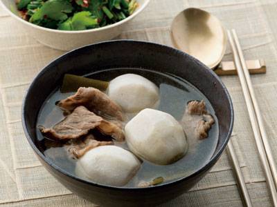 青菜をたっぷり入れた水ギョーザを煮干しのだしでいただきます。小松菜のほか、香りのよい春菊やせりでつくるのもおすすめ。