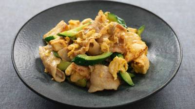 具材は豚こまとピーマンだけ。調味料はあらかじめ混ぜておき、一気に仕上げます。風味豊かなオイスターソースでバッチリ味が決まります。
