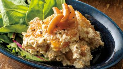香ばしく焼き上げた手羽先と、シャリシャリほくほくの長芋。甘酸っぱいアンがベストマッチ。おかずにも、おつまみとしても大人気。
