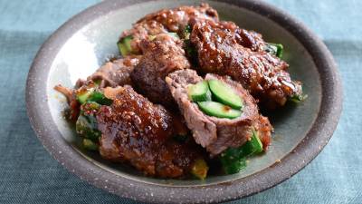 ド~ンと大きく巻いちゃう肉巻き。焼くと中のチーズが溶けて、具をまとめてくれるから食べやすい。おつまみ、お弁当にもおすすめです。