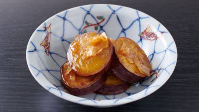 鶴の飾り切りをした里芋の煮しめです。味がしみた里芋は味もまた格別のおいしさ!しょうゆを控えめに、ごく白く仕上げます。