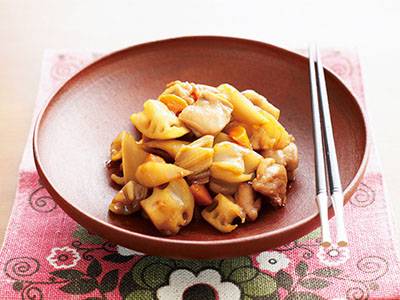 モッチリしたれんこんがホッとする味わいです。冷めてもおいしいく、お弁当のおかずにもおすすめ。