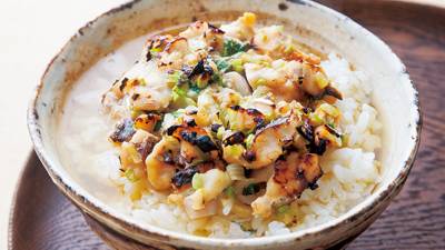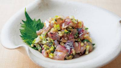きのこのうまみをたっぷり楽しめる、塩味のマーボー豆腐。青じそは手でちぎると香りが際立ちます。