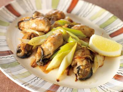 旬のかきのうまみとバターじょうゆの風味をまとったねぎが絶品!かきはサッとゆでてから焼きましょう。身が縮まずにふっくらと仕上がります。