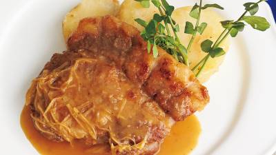まろやかなしょうがソースに厚切りの豚肉がベストマッチ。パンとワインを添えれば、いつもと違うごちそうに!