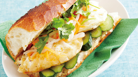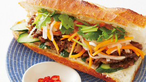 「バインミー」とはベトナム語でフランスパンのこと。バターの代わりにクリームチーズを塗り、なますをはさみます。二つの酸味が効いて、食べ応えはあるけれどさっぱりしたおいしさ。