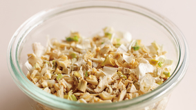 チャーハンの味出しに欠かせない3種の香味野菜を干してミックスします。香りを出すのはもちろん、食感のアクセントに。
