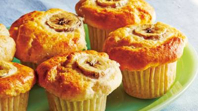 バナナの粘りでふくらませ、連結タイプのマフィン型で焼いて生地のしぼみを防ぐと、ふんわりふわふわの口当たりになります。