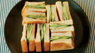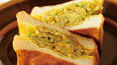 食パンは両面をトーストしてバターを塗ります。ハムの塩けとマーマレードの甘酸っぱさ、パセリの香りが相性ぴったり。驚くほどたっぷりのパセリが食べられます。