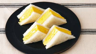 厚焼き卵をはさんだフワフワ食感の、和風テイストが新しいサンドイッチ!からしマヨが隠し味です。