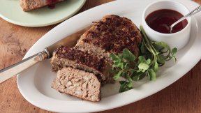 この時季においしいごぼう、れんこん、まいたけがゴロゴロ入った、歯ごたえのよいミートローフ。オーブンで焼いたような本格派の仕上がりです。